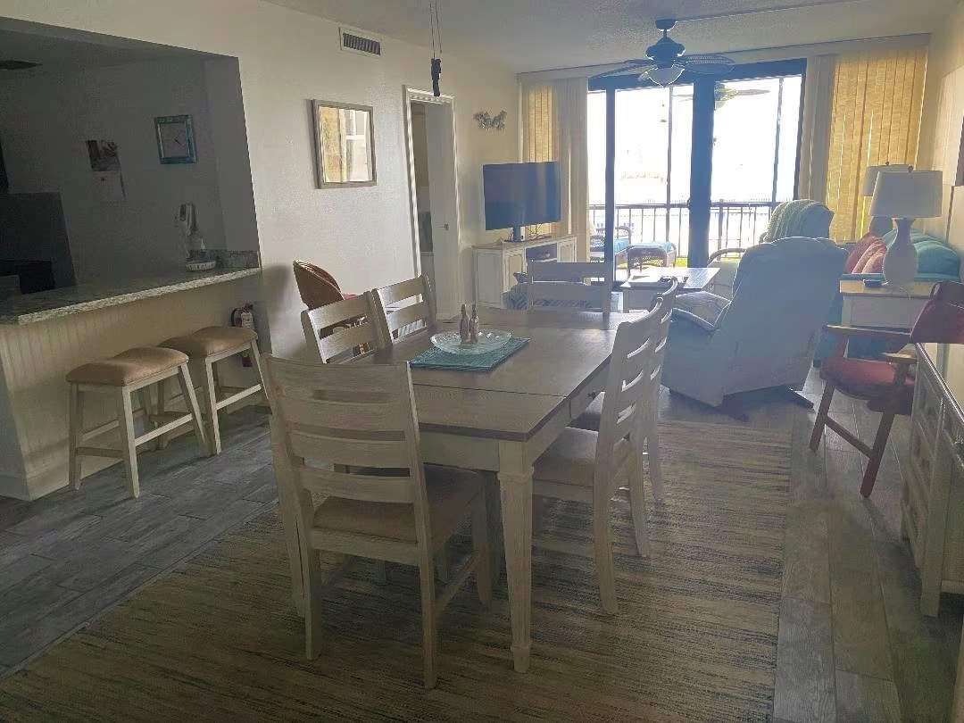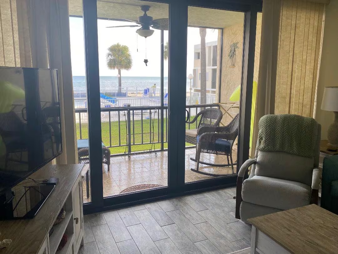 The spaceEmbrace the allure of the Atlantic with our oceanview escape, a testament to seaside living. Step into a space where each morning greets you with golden sunlight and calming waves, visible from the comfort of your private screened lanai. The living area, wrapped in coastal elegance, extends a warm welcome, with updated décor and tile floors reflecting the crisp oceanic palette.