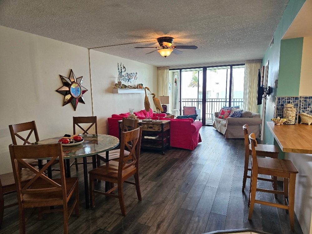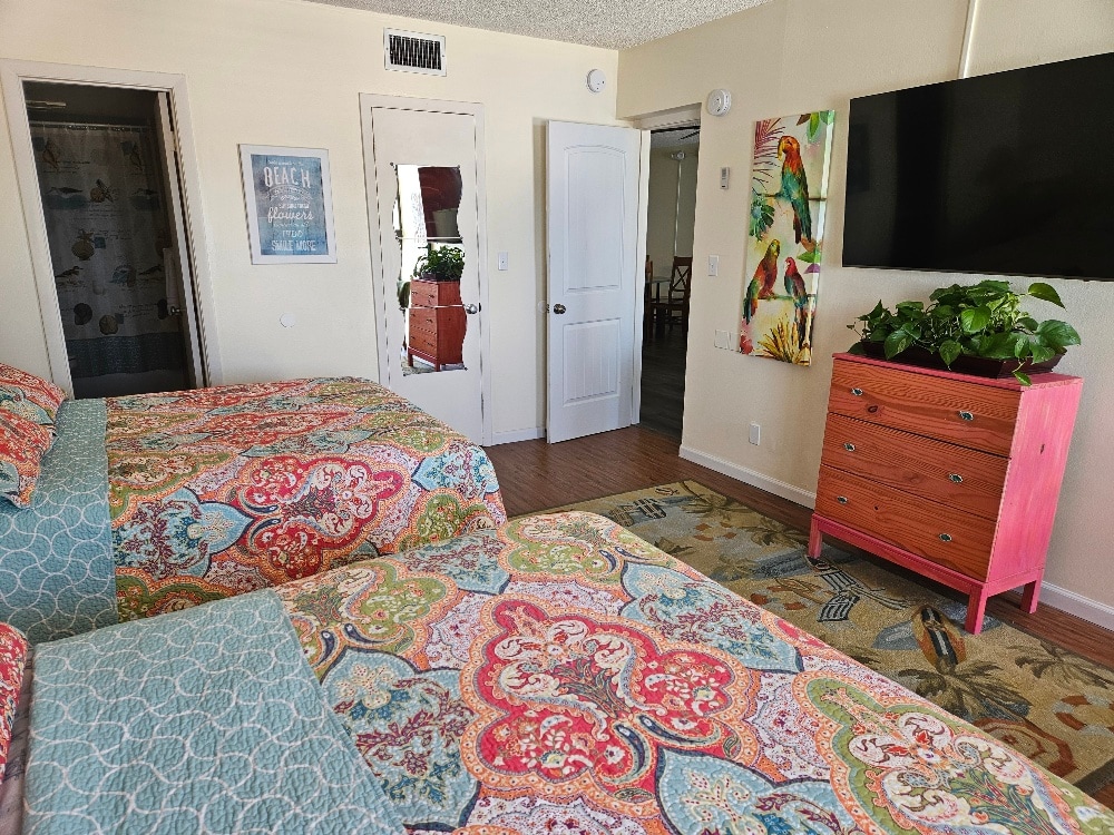 The spaceWelcome to our colorful and artistically adorned condo, a haven where aesthetics and comfort converge. Each of the three bedrooms is thoughtfully furnished to ensure a restful sleep, while the two bathrooms offer convenience for groups or families. Dive into culinary adventures in our full kitchen, then gather for meals in the inviting dining room.